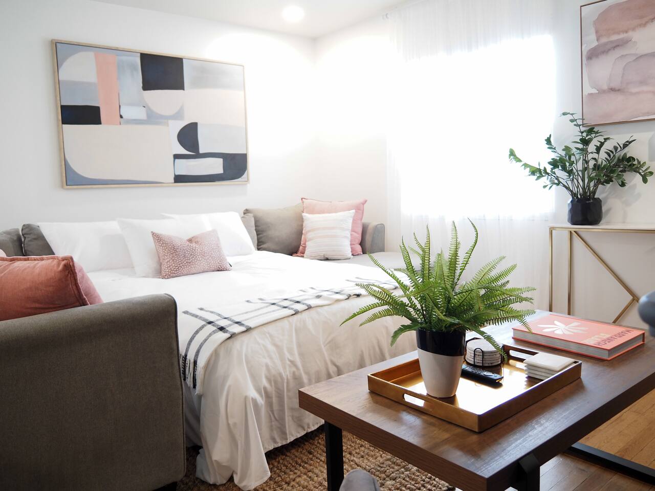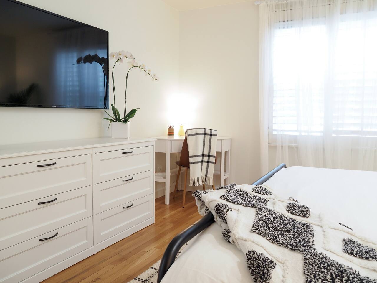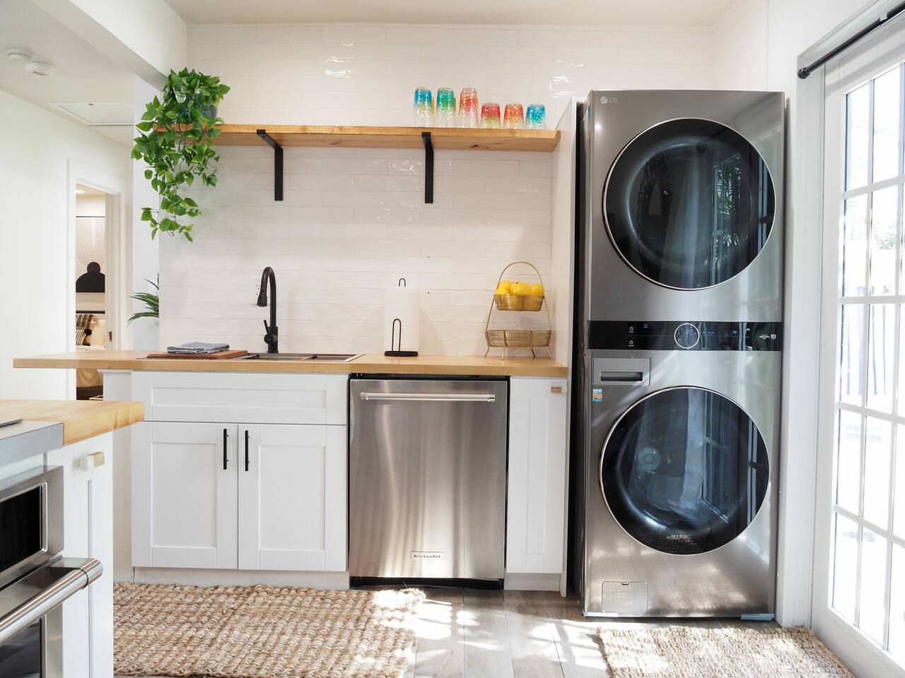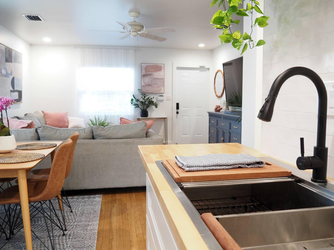 Fully stocked kitchen with induction cooktop, convection oven, microwave, & dishwasher